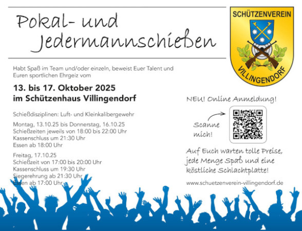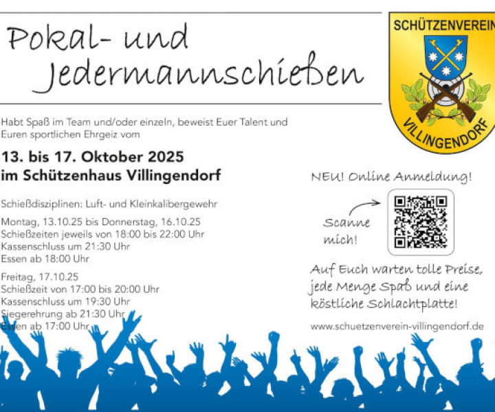 Bald ist es wieder so weit. Das Jedermannschießen 2025 findet wieder zur gewohnten Zeit statt. Von 13. - 17.10. kann geschossen und Schlachtplatte gegessen werden. Wir wünschen euch viel Erfolg und vor allem Spaß. Wir würde uns feuen euch zu sehen.